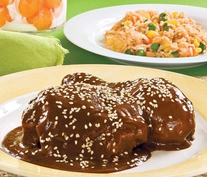 - Servir colocando la pieza de pollo, bañarla con mole y rociar algunas semillas de ajonjolí para adornar.